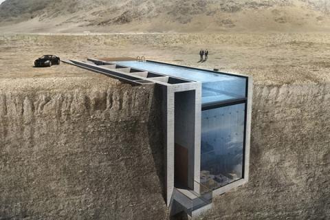 گروهی متشکل از معماران هلندی به نام OPA (پلتفرم باز برای معماری)، سال گذشته خانهای را در قلب صخره طراحی کردند که تماما از بتن بوده و بر روی سقف آن، یک استخر قرار داده شده که به افزایش میزان روشنایی محیط داخلی نیز کمک میکند.